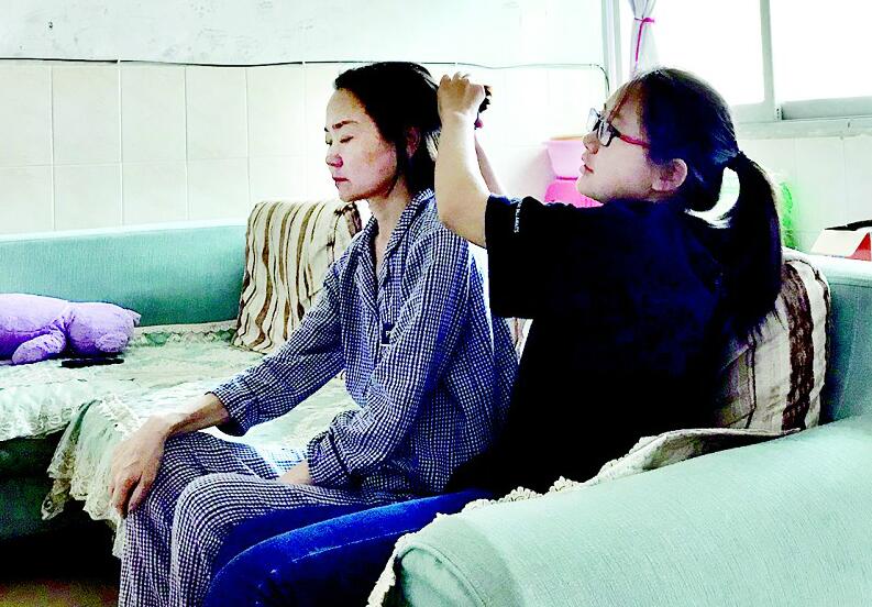 王渝玥原計劃跟同學(xué)開暑期培訓(xùn)班,這樣可給媽媽掙點藥費,但沒想到媽媽病情惡化,她只好放棄開班的想法全身心陪護母親。從沒干過家務(wù)的她,拿起了拖把拖地,學(xué)會了簡單做飯,每天幫母親洗澡,扶著母親上下床、上衛(wèi)生間?!吧洗髮W(xué)的日子越來越近,我要好好陪媽媽,她已沒法陪我一起去北京了……”王渝玥說到這里淚如雨下。