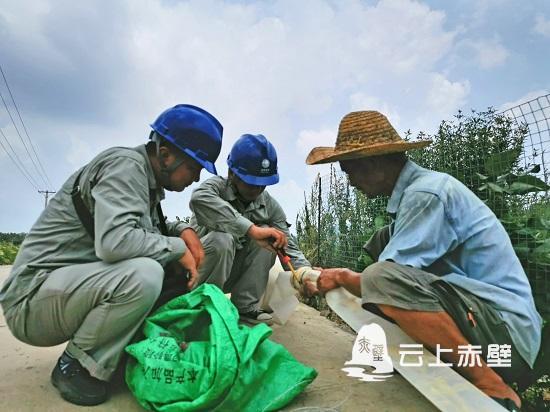 田紅云朋友圈中的這位微信好友是赤壁市供電公司的黨委書記余柒明。在得知斗門村農田出現干旱的基本情況后,余柒明立即組織車埠供電所“星火”黨員志愿服務隊的志愿者們趕到現場勘查旱情,在向農戶了解抽水灌溉的實際困難后,他們頂著高溫,將低壓線路引至遠處的水源地,裝設電能表、漏電保護器、連接抽水泵,經過一個多小時的作業(yè),讓水嘩啦啦流入了農戶干涸的農田。