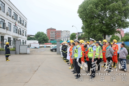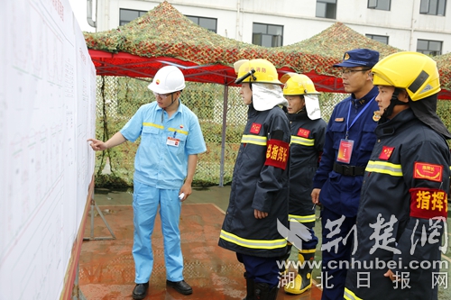 圖為石油化工單位負(fù)責(zé)人講解演練場(chǎng)所現(xiàn)場(chǎng)。通訊員朱燕林?jǐn)z