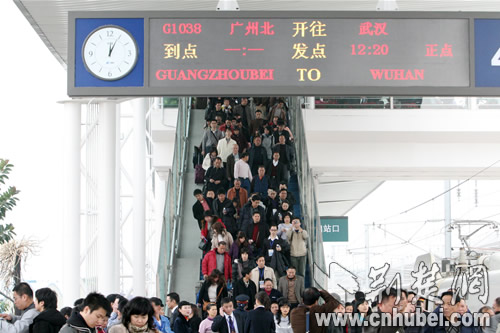中午11時46分,列車停靠廣州北站,歷時僅2小時46分鐘。在站臺上,記者遇到了一位帶著小孩的江西九江乘客,她興奮告訴記者,“我是慕名專程到武漢坐高鐵快車到廣州探親的,沒想到不到3個小時就到了,簡直不敢想!
