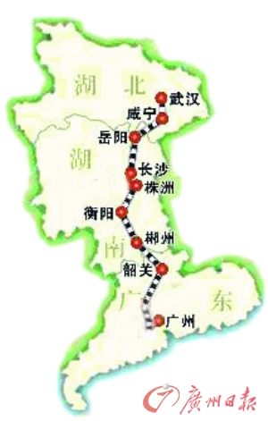 按照目前的列車時(shí)刻,廣州至長沙需6~8小時(shí);而廣州至武漢則需10個(gè)小時(shí)左右。武廣高鐵通車后,廣州至長沙只需2個(gè)小時(shí),到武漢只需3小時(shí)。城市之間距離的縮短,首先帶來的是粵、湘、鄂三地人員的流動。屆時(shí),佛山人可以搭乘武廣高鐵,早上在佛山飲早茶,中午到長沙吃湘菜,下午在武漢登黃鶴樓嘆江風(fēng)。