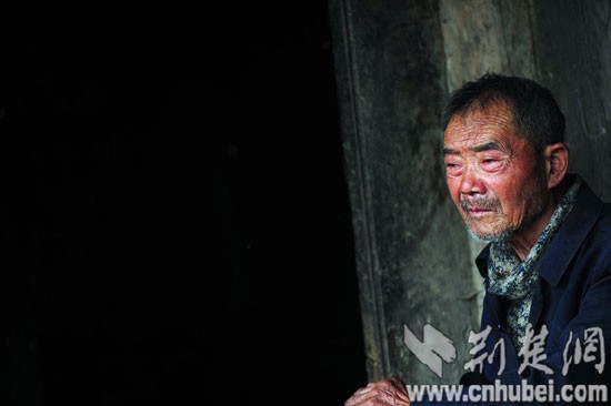 83歲的爺爺默默抽著旱煙,淚水充滿眼眶。