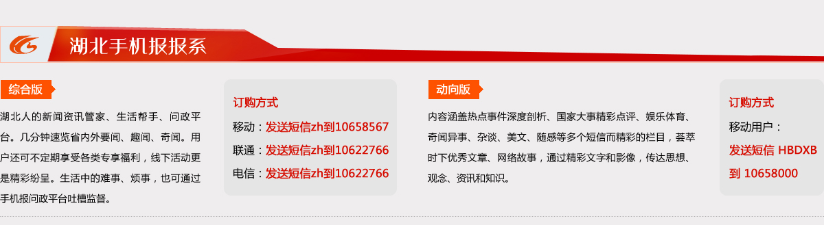 掌閱天下,心知湖北。歡迎訂閱湖北手機報,發(fā)送ZH到10622766即可訂閱,每月僅3元。