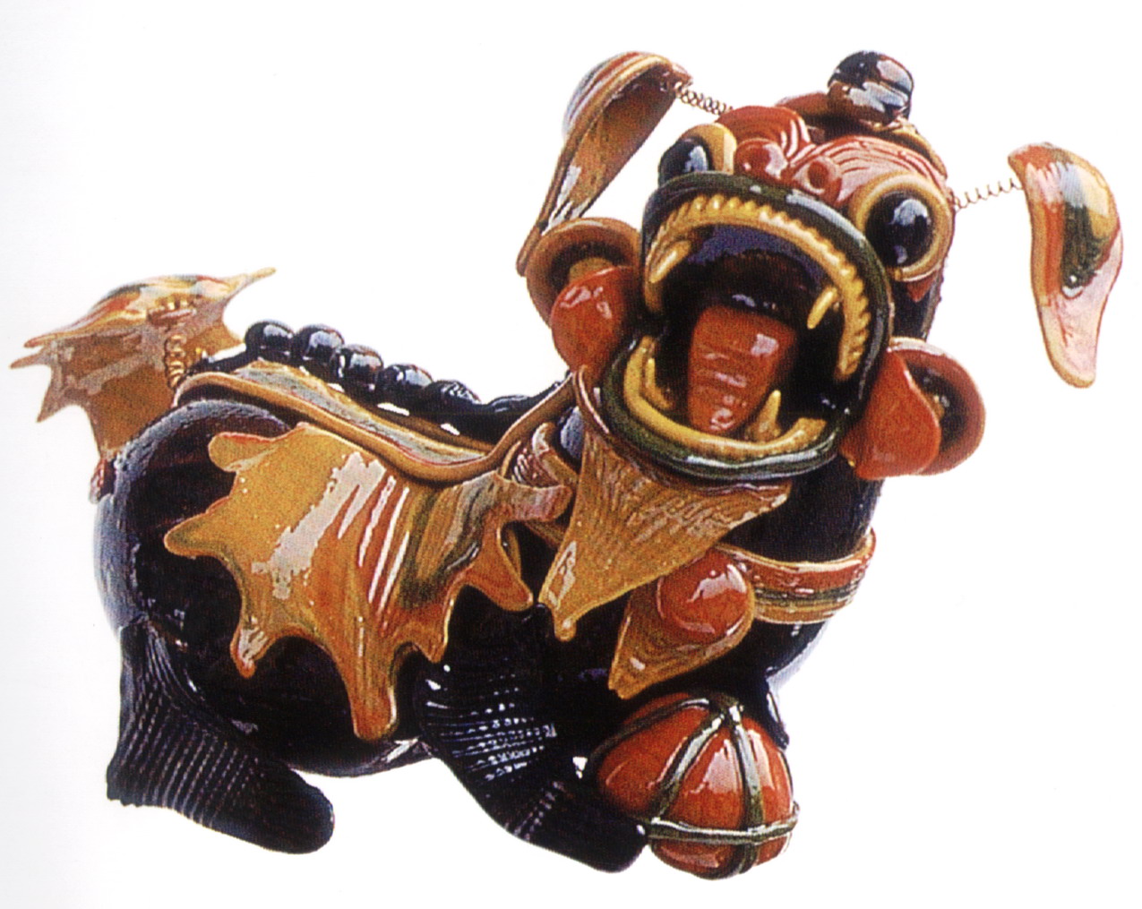 糖塑,俗稱吹糖,在湖北遍及全省,尤以天門最為突出。糖塑之所以贏得人們的喜愛,是因?yàn)樗?dú)具特色:1、原料可塑性強(qiáng):麥芽糖是糖塑的主要原料,加熱后變軟,比面塑更具可塑性,既可吹成薄而亮的各類造型,又可拉成粗細(xì)不同的糖絲。捏成不同形狀的配件,易粘且牢固;2、造型神形兼?zhèn)洌禾撬艿募妓囍饕Ψ蛟凇按怠鄙希粔K糖坯在藝人手中,邊吹邊捏,再通過搓、壓、挑、剪等手段,加上輔助的小鐵絲,少則幾分鐘,多則半小時,一件作品就完成了;3、色彩和諧醒目:麥芽糖加溫變軟加入紅、綠、黃、黑四種色素,根據(jù)需要又可調(diào)和成數(shù)十種復(fù)色,色彩響亮和諧;4、肌理變化豐富是糖塑獨(dú)具的特點(diǎn):在糖塑中,附件變化萬千的肌理又與主體吹成光滑的表面形成鮮明的對比,顯得更加豐富耐看;5、“活”的部件是糖塑的又一特點(diǎn):有的部件裝上自制的鋼絲彈簧,一經(jīng)拿在手中,部件都“活”起來了,更具生氣。